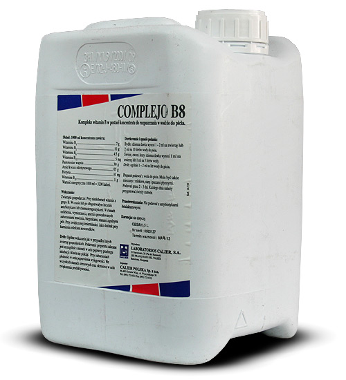Complejo B8 stosuj w dawce 1-2 l / 1000 l wypijanej wody przez 2-3 dni.