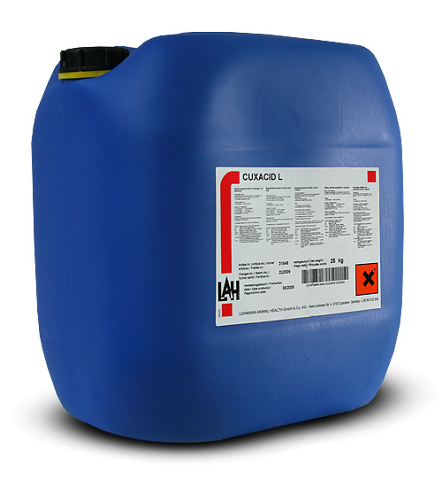 Cuxacid stosuj w dawce 1-4 kg / 1000 l wypijanej wody przez 1-3 dni lub dłużej, jeśli zaistnieje taka potrzeba.