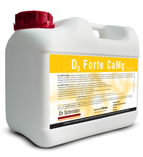 D3 FORTE CaMg to preparat zawierający płynny roztwór witaminy D3, która reguluje tworzenie prawidłowego kośćca zwierząt. Obecność witaminy D3 wpływa na szybsze i lepsze wykorzystanie materiałów budulcowych szkieletu, takich jak wapń i fosfor oraz reguluje ich wchłanianie w jelitach. Dostateczny poziom minerałów i witaminy D3 determinuje prawidłowy rozwój układu kostnego oraz sprzyja szybkiej poprawie jakości skorup jaj w stadach nieśnych. Szczególnie istotna jest wysoka zawartość Magnezu w preparacie, który aktywuje procesy kostnienia, wpływa na przyswajanie wapnia i ułatwia transformację witaminy D do formy aktywnej, co skutecznie stymuluje komórki kościotwórcze i pomaga budować mocne kości.
