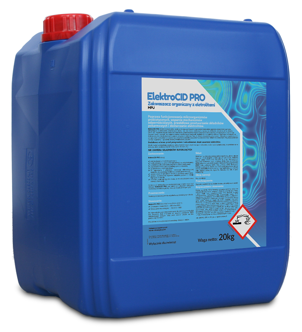 ElektroCID PRO dzięki doświadczalnie ustalonej kompozycji kwasów organicznych skutecznie ogranicza rozwój drobnoustrojów patogennych w przewodzie pokarmowym drobiu. Już przy niskim dawkowaniu wpływa na efektywne obniżenie pH w żołądku (do 4 - 4,5). Poprawia stopień strawności składników pokarmowych i znacząco przyczynia się do poprawy ich wykorzystania. Gwarantuje świeżość wody i czystość linii pojenia poprzez dezaktywację cząsteczek organicznych w systemie wodnym. Ogranicza namnażanie się drobnoustrojów chorobotwórczych poprzez utrzymanie właściwej flory jelitowej w przewodzie pokarmowym. Zabezpiecza organizm przed przegrzaniem i odwodnieniem zapewniając utrzymanie prawidłowego poziomu wody oraz innych składników odżywczych. Reguluje poprawność osmozy organizmu i spowalnia procesy metaboliczne grzybów.