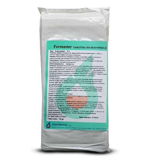 1 tabletka Formaster przeznaczona jest do dezynfekcji 300m³.