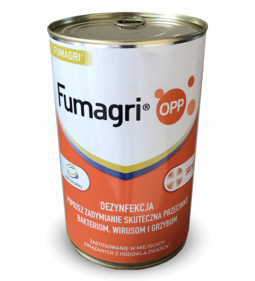 Fumagri 500 m3 to preparat bakterio i grzybobójczy w postaci odkażającego proszku do dezynfekcji pustych pomieszczeń inwentarskich (kurniki, obory), silosów paszowych, wylęgarniach i środkach transportu (zwierząt, artykułów spożywczych, pasz).