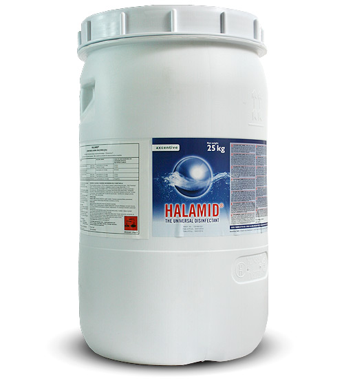 Halamid to uniwersalny, skuteczny środek dezynfekujący łatwo ulegający biodegradacji, zachowujący wyjątkową trwałość w warunkach odpowiedniego przechowywania. Testy wykazały wysoką stabilność środka Halamid, tak w formie proszku jak i roztworu, dzięki czemu produkt pozostaje gotowy do zastosowania z pełną skutecznością, gdy tylko będzie taka potrzeba.