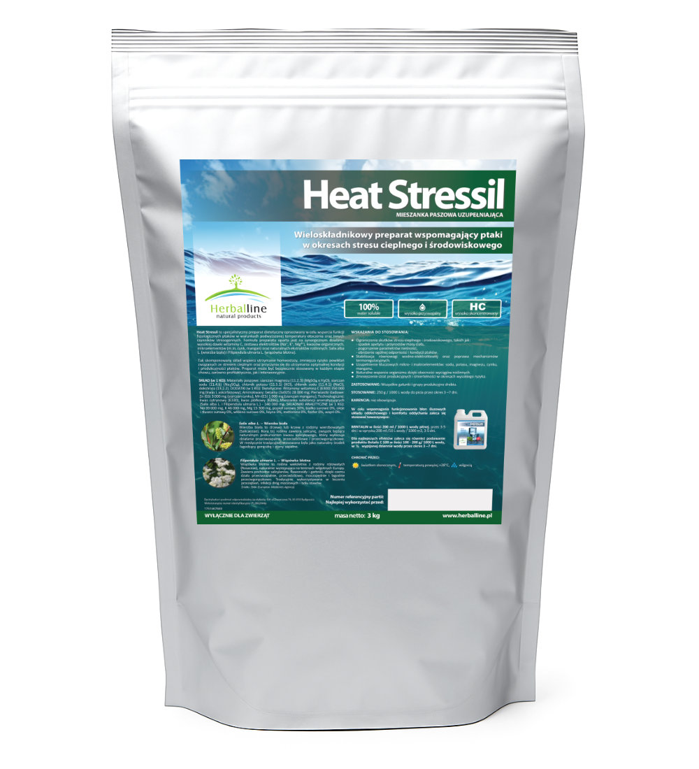 Heat Stressil to specjalistyczny preparat dietetyczny opracowany w celu wsparcia funkcji fizjologicznych ptaków w warunkach podwyższonej temperatury otoczenia i innych czynników stresogennych. Formuła preparatu oparta jest na synergicznym działaniu wysokiej dawki witaminy C, zestawu elektrolitów (Na+, K+, Mg+) , kwasów organicznych, mikroelementów (m. in. cynk, mangan) oraz naturalnych ekstraktów roślinnych (wierzba biała, wiązówka błotna).