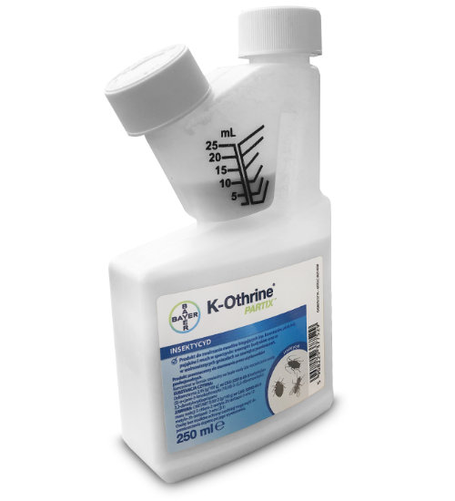 K-Othrine Partix zwalcza owady biegające np. karaczany, pluskwy, pająki i muchy wewnątrz budynków oraz os w wolno wiszących gniazdach na zewnątrz pomieszczeń.