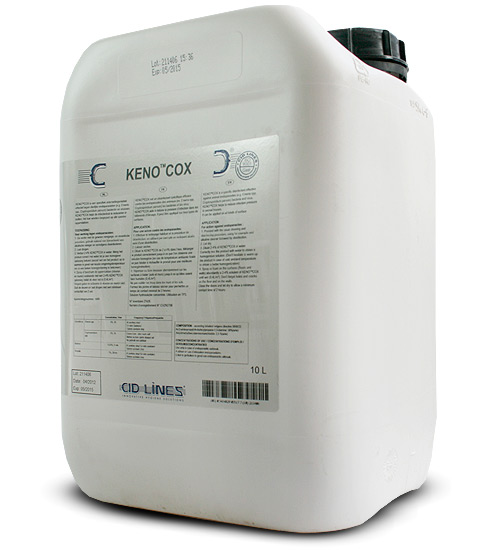 Keno Cox to płynny preparat dezynfekcyjny do pomieszczeń inwentarskich, sprzętu i środków transportu. Keno Cox wykazuje silne działanie bakteriobójcze, wirusobójcze oraz przeciw pasożytom wywołującym u drobiu kokcydiozę - Eimeria tenella. Dzięki tym właściwościom redukuje zagrożenie w obiektach inwentarskich, może być stosowany na każdej powierzchni nie powodując korozji. Keno Cox należy aplikować przy użyciu sprzetu wysokociśnieniowego.