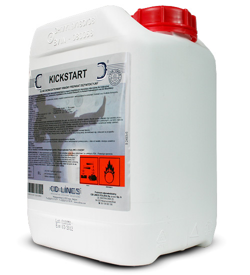 Kickstart jest skoncentrowanym, kwaśnym preparatem dezynfekcyjnym. Działa przeciwko wszystkim drobnoustrojom i ich zarodnikom.