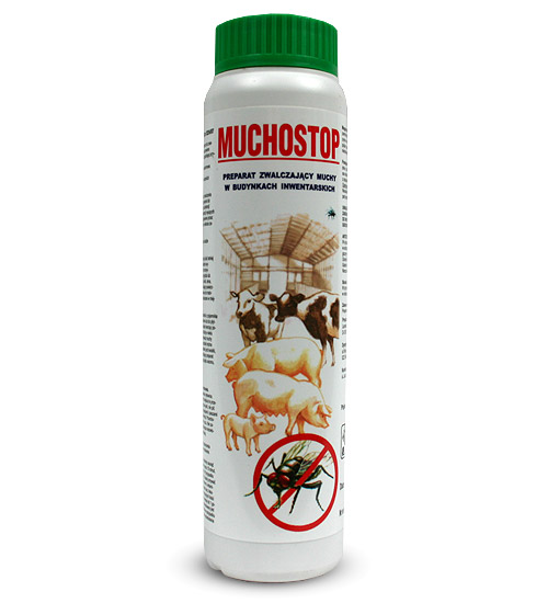 Muchostop jest preparatem owadobójczym stworzonym do zwalczania much. Posiada formę granulatu. Działa na drodze pokarmowej, po spożyciu trutki przez owady.