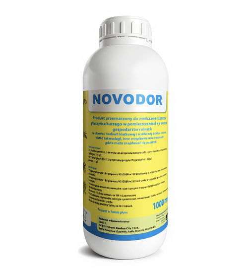 Novodor jest przeznaczony do zwalczania roztoczy, ptaszyńca kurzego (larwy i dorosłego osobnika) i pleśniakowca, dorosłych much, pcheł, wszołów, chrząszczy gnojowych, karaluchów, pająków i komarów w pomieszczeniach na terenie gospodarstw rolnych (chowie i hodowli klatkowej i ściółkowej drobiu – ściany, klatki, taśmociągi, inne urządzenia oraz miejsca gdzie może znajdować się pasożyt. Nr pozwolenia na obrót produktem biobójczym: 7814/19
