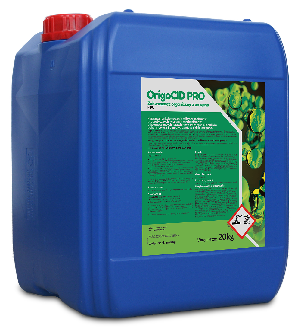 OrigoCID PRO dzięki unikalnej kompozycji kwasów organicznych skutecznie ogranicza rozwój drobnoustrojów patogennych w przewodzie pokarmowym drobiu. Już przy niskim dawkowaniu wpływa na efektywne obniżenie pH w żołądku (do 4 - 4,5). Poprawia stopień strawności składników pokarmowych i znacząco przyczynia się do poprawy ich wykorzystania. Gwarantuje świeżość wody i czystość linii pojenia poprzez dezaktywację cząsteczek organicznych w systemie wodnym. Ogranicza namnażanie się drobnoustrojów chorobotwórczych poprzez utrzymanie właściwej flory jelitowej w przewodzie pokarmowym.