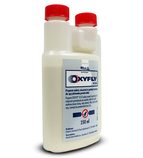 OXYFLY przeznaczony jest do skutecznego zwalczania owadów w pomieszczeniach inwentarskich przy użyciu metody opryskiwania.