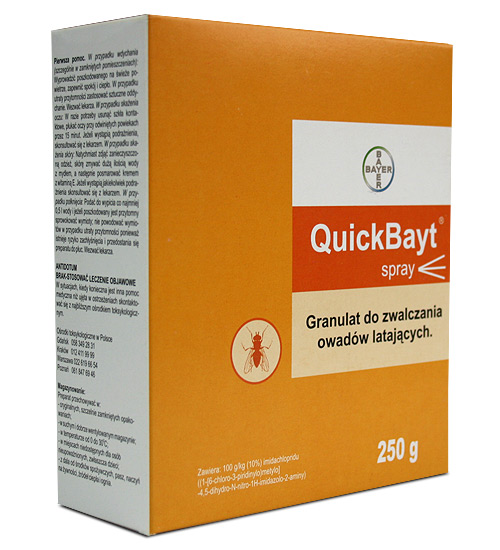 Quickbayt Spray to granulat przeznaczony do przygotowywania roztworu roboczego stosowanego w celu zwalczania owadów latających.