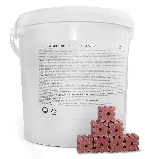 Ratimor kostka woskowa to produkt w formie kostek woskowych o zabarwieniu czerwonym, przeznaczony do zwalczania szczurów i myszy z pomieszczeń magazynowych, obiektów gospodarczych, hodowlanych i ich okolic.
