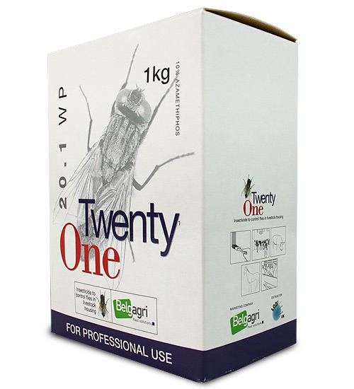 Twenty One WP to preparat owadobójczy używany do zwalczania dorosłych osobników pleśniakowca, owadów latajacych - much, komarów na fermach drobiu, chlewnich i innych w budynkach inwentarskich. Tylko 20% żyjących dorosłych owadów jest widocznych, pozostałe 80% populacji jest ukryte lub nie można ich zauważyć, gdyż występują pod postacją jaj, poczwarek lub larw.